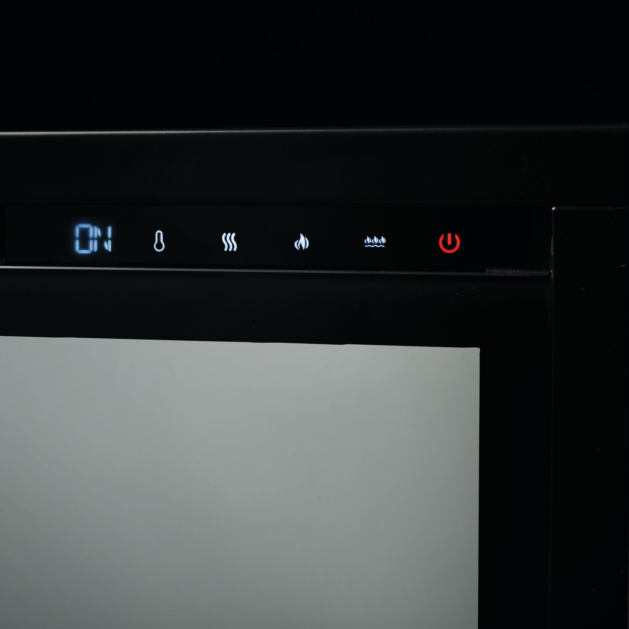 For total convenience, the Entice™ Electric Fireplace includes a remote control and touchscreen panel, giving you full control over flame effects, ember bed colours, and heat output. It can also operate with or without heat, making it perfect for year-round visual ambience.